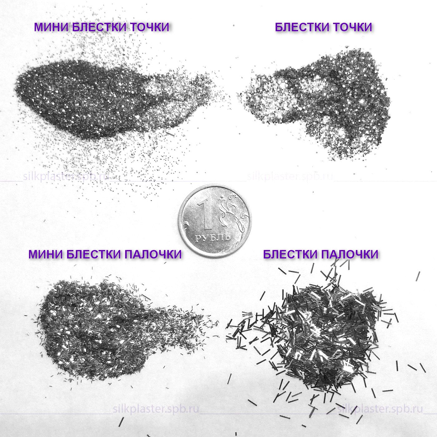 • Декоративная добавка в виде блестящих серебристых палочек. Как правило, в одну упаковку жидких обоев добавляется один пакетик декоративных блесток.
