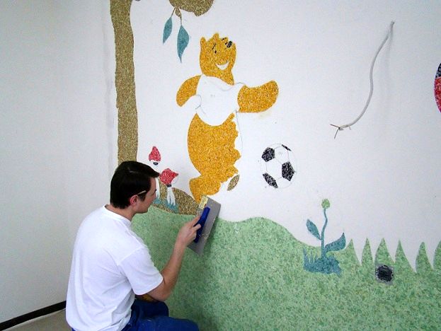 Все виды материала рекомендуется наносить одинаковой толщиной слоя жидких обоев. - При необходимости выделения четких контуров или отдельных элементов рисунка, используйте фломастеры или маркер (на высохших жидких обоях).